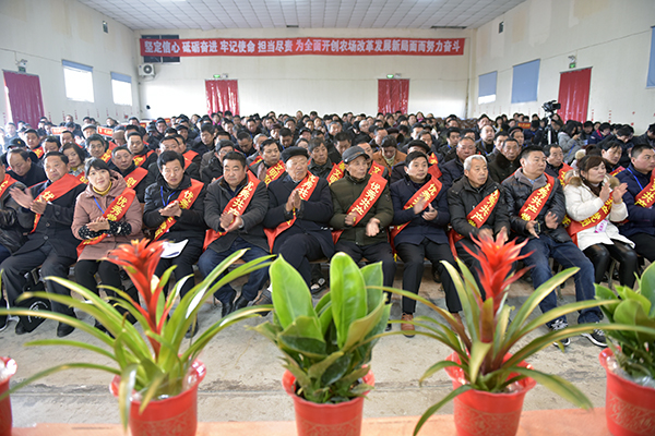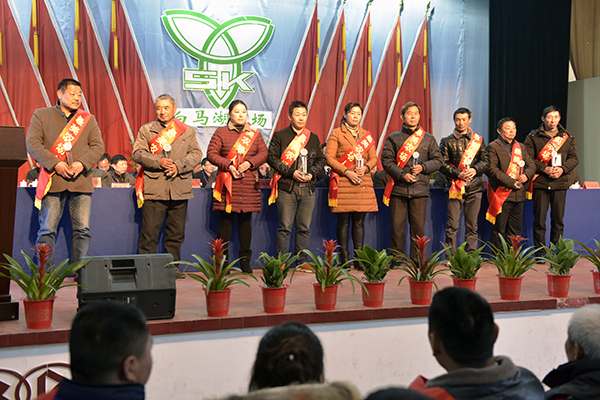 副場(chǎng)長(zhǎng)王林宣讀了大會(huì)關(guān)于上述三個(gè)報(bào)告和兩份相關(guān)文件的決議,號(hào)召全場(chǎng)干群為實(shí)現(xiàn)2018年各項(xiàng)目標(biāo)任務(wù)而不懈努力。黨委副書記韓正光宣讀表彰決定,對(duì)2017年度成績(jī)突出的36個(gè)先進(jìn)單位、55個(gè)先進(jìn)個(gè)人或家庭進(jìn)行表彰并隆重頒獎(jiǎng)。四個(gè)單位的主要負(fù)責(zé)人和創(chuàng)業(yè)創(chuàng)新先進(jìn)個(gè)人代表溫仕貴分別作了交流或表態(tài)發(fā)言。