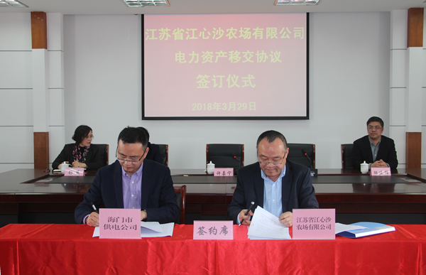 為深入貫徹落實集團公司關(guān)于深化改革發(fā)展工作的相關(guān)精神要求,加快推進農(nóng)場辦社會職能改革工作。3月29日,江心沙農(nóng)場與海門市供電公司資產(chǎn)移交簽約儀式在農(nóng)場舉行。農(nóng)場黨委書記、場長許嘉寧,黨委副書記嚴忠,副場長楊慧,海門市供電公司總經(jīng)理李秋實、副總經(jīng)理陸建鋒,以及雙方相關(guān)單位、部門負責人出席簽約儀式。