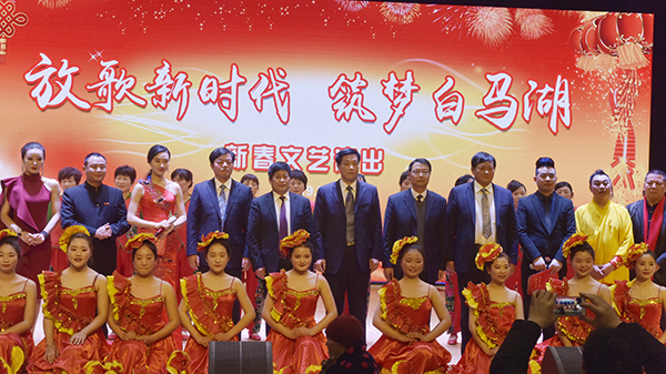大會(huì)緊接著還舉行了“放歌新時(shí)代、筑夢白馬湖”新春文藝演出。姚春華在演出前作了熱情洋溢的致辭。來自江蘇青春歌舞團(tuán)的演員及白馬湖駿逸舞蹈隊(duì)的隊(duì)員們?yōu)榕c會(huì)代表及部分職工居民們帶來了《盛世龍騰耀中華》《春天的故事》《春雨沐浴白馬湖》等十多個(gè)精彩的文藝節(jié)目,整場演出最后在舞蹈《不忘初心 砥礪前行》中落下了帷幕。