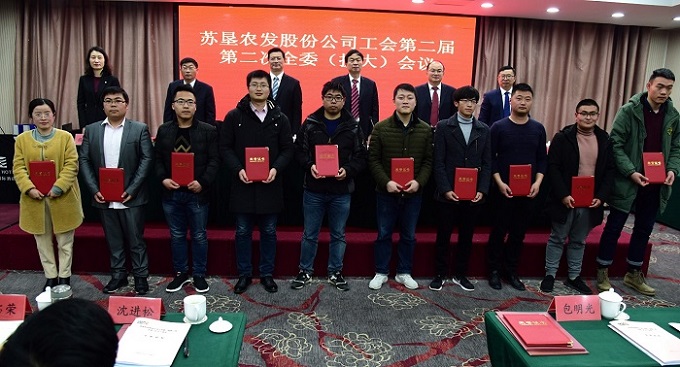 孟亞平在會上作了題為《筑夢新時代 引領新征程 為推動蘇墾農發高質量發展譜寫工會工作新篇章》的工會工作報告。報告全面總結了公司工會2018年7項重點工作,深刻剖析了工會工作的薄弱環節和不足,安排部署了公司工會2019年七項重點工作:一是圍繞思想大解放,學習貫徹黨的十九大、中國工會十七大精神,著力推動工會工作全面升級;二是圍繞工會參與職能,加強職工與企業共存意識,著力深化企業民主監督和管理再上新臺階;三是圍繞企業文化建設,充分發揮文化助推器作用,著力加強企業文化軟實力和文化支撐力;四是圍繞民生工程建設,加強實施扶貧幫困,著力完成精準幫扶精準脫貧任務;五是圍繞職工素質提升,加強職工創新工作室建設,著力激發職工學習熱情和工作激情;六是圍繞輿論宣傳導向,加強工會宣傳工作,傳播正能量,著力為改革跨越發展營造良好輿論氛圍;七是圍繞工會自身建設,加強職工之家創建,著力增強服務企業、服務職工的重要作用。