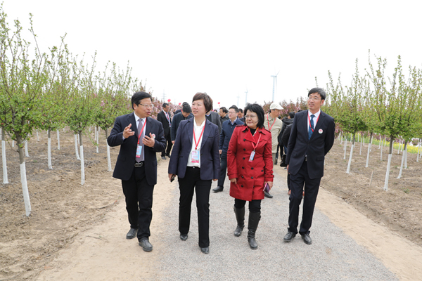 開幕式結束后,與會領導和嘉賓興致勃勃地參加了“親近海棠”游園活動。漫步在“十里海棠”——觀賞海棠科技產業園,競相綻放的五十多個品種的海棠花,千姿百態,嬌艷欲滴,吸引大家駐足觀賞。
