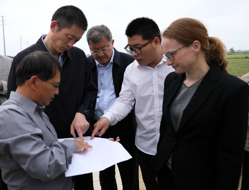 晴日暖風(fēng)生麥氣,綠陰幽草勝花時(shí)。5月15日,黃海金色的麥浪迎來了德意志聯(lián)邦共和國駐上海總領(lǐng)事館科技與商務(wù)領(lǐng)事朗素安、禮賓主管沙安迪、禮賓專員張立春、項(xiàng)目助理愛林娜以及連云港外事辦副主任李媛一行,就德國聯(lián)邦與食品農(nóng)業(yè)部計(jì)劃訪問黃海并考察中德農(nóng)業(yè)合作項(xiàng)目進(jìn)行先遣考察。黃海農(nóng)場(chǎng)公司黨委書記、蘇墾農(nóng)發(fā)黃海分公司總經(jīng)理、中德示范園主任賀在銳,農(nóng)場(chǎng)公司董事長、總經(jīng)理李衛(wèi)東對(duì)相關(guān)事宜進(jìn)行對(duì)接溝通與磋商。中德示范園副主任何彥平、德國長期專家金·卡姆等陪同交流。