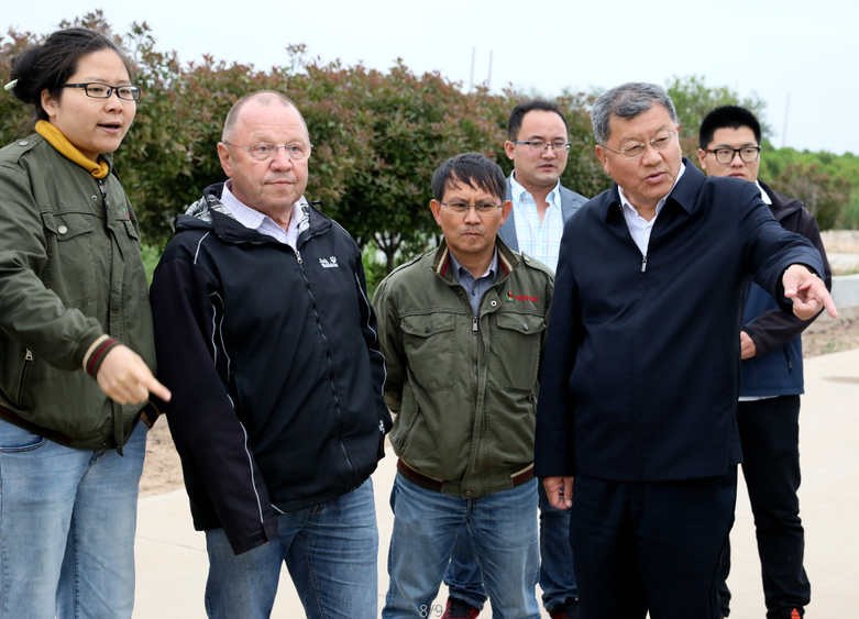 5月17日,李衛(wèi)東對海恩哈德•柔斯伯格的到來表示歡迎。在觀看了黃海農(nóng)場公司形象片、中德示范園成果展示片后,李衛(wèi)東、何彥平等陪同海恩哈德一行到“田間日”活動(dòng)現(xiàn)場和田間實(shí)地查看準(zhǔn)備現(xiàn)場。期間,李衛(wèi)東詳細(xì)介紹了黃海公司與中德示范園情況,并就田間日的籌備工作,尤其是活動(dòng)期間的中德文化交流展示進(jìn)行具體詳實(shí)的磋商,表示將全力以赴、精心組織、周密安排,在"精、細(xì)、實(shí)”上下工夫,確保“田間日”活動(dòng)成功舉辦。