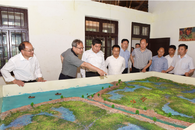 沿著農建四師紀念碑雕像,毛澤東主席關于生產待命、建設農場的命令碑文和農建四師暨淮海農場歷史陳列館,鄧慶海看得認真,聽得仔細,不時記下珍貴史料。農建四師紀念碑雕像的含義,毛主席命令碑文,陳列館中的許多老照片、老物件和軍墾文化的情況介紹,鄧慶海都了然于心,對有的圖片、文字,他還掏出手機拍照留存。鄧慶海強調,農建四師是一支英雄的部隊,陳列館內史料豐富、內容詳實,是一個軍墾傳統文化教育的好平臺。今后要繼續發揮好陳列館的紅色教育作用,繼承發揚“艱苦奮斗、勇于奉獻、開拓創新”的蘇墾精神,讓更多人的思想在這里得到軍墾傳統文化的洗禮。