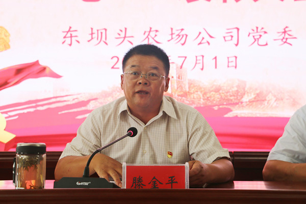黨委書記滕金平在慶祝建黨98周年暨“七一”表彰大會(huì)上作講話。他指出,一要不忘歷史、牢記初心。開展主題教育,學(xué)習(xí)總書記講話,回顧革命歷程,領(lǐng)悟初心,對(duì)照為群眾謀幸福的標(biāo)兵,去驗(yàn)證自己的初心,把自己的初心融入到為東壩頭職工群眾謀幸福的事業(yè)中;二要立足時(shí)代、擔(dān)當(dāng)使命。要以實(shí)現(xiàn)東壩頭“精強(qiáng)黨建、精致農(nóng)業(yè)、精品種業(yè)、精美城鎮(zhèn)”的“鄉(xiāng)村振興戰(zhàn)略-農(nóng)墾在行動(dòng)”為目標(biāo),培育能打會(huì)戰(zhàn)、一心為職工群眾著想的高質(zhì)量團(tuán)隊(duì),培育甘為奉獻(xiàn)、沖鋒在前、勇于擔(dān)當(dāng)?shù)膬?yōu)秀共產(chǎn)黨員隊(duì)伍,將企業(yè)發(fā)展融入到實(shí)現(xiàn)老百姓對(duì)美好生活的向往之中,立足新時(shí)代、勇于擔(dān)當(dāng),為職工群眾謀幸福、為民族謀復(fù)興的使命;三要打造過硬支部、構(gòu)筑戰(zhàn)斗堡壘。著力打造能力過硬、發(fā)展過硬、服務(wù)過硬、作風(fēng)過硬的黨支部。他強(qiáng)調(diào),全員必須自覺把思想和行動(dòng)統(tǒng)一到習(xí)近平總書記的重要講話精神上來(lái),牢牢把握“守初心、擔(dān)使命、找差距、抓落實(shí)”的總要求,認(rèn)真學(xué)習(xí)貫徹會(huì)議精神,確保主題教育取得扎扎實(shí)實(shí)的成效,向黨的98周歲生日和祖國(guó)的70周歲生日獻(xiàn)禮!