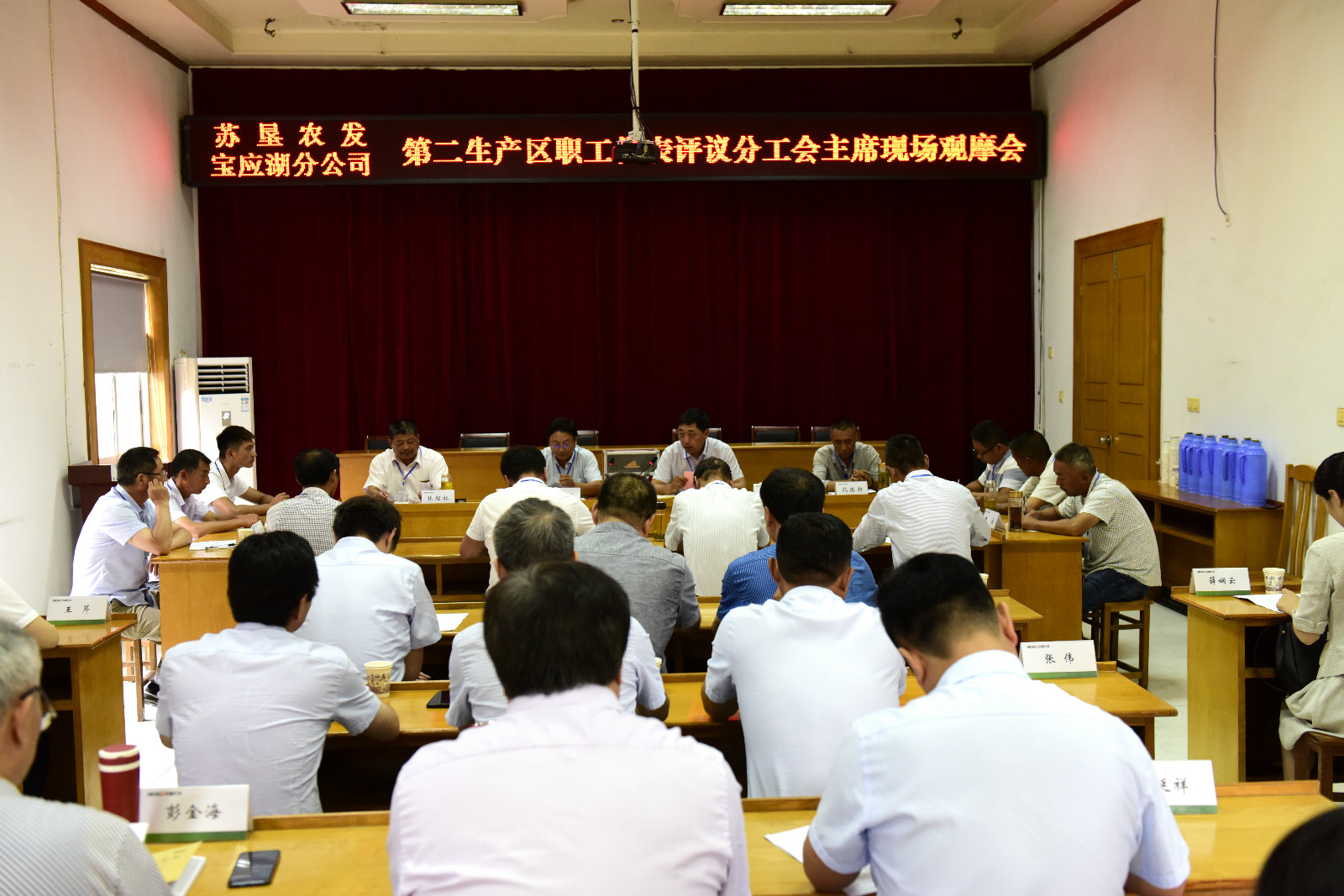 現場推進會上,寶應湖分公司工會主席介紹了“雙亮雙評”工作,觀看了匯報片,觀摩了基層評議分會主席現場,集團公司工會、農發公司工會相關領導、寶應湖農場有限公司黨委書記、工會主席和各分、子公司工會副主席或負責人參加了會議。