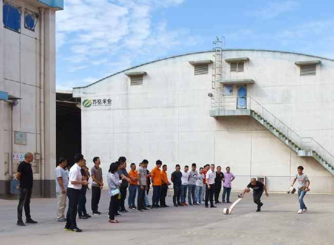 9月20日上午,由江蘇省農(nóng)墾米業(yè)集團(tuán)有限公司工會(huì)委員會(huì)主辦,江蘇省農(nóng)墾米業(yè)集團(tuán)淮海有限公司分會(huì)承辦,以“守初心 記使命 勇?lián)?dāng) 練本領(lǐng)”為主題的蘇墾米業(yè)2019年勞動(dòng)技能競賽活動(dòng),在蘇墾米業(yè)集團(tuán)淮海有限公司拉開帷幕。蘇墾米業(yè)集團(tuán)有限公司工會(huì)副主席楊衛(wèi)東出席競賽活動(dòng)并啟動(dòng)賽事,淮海有限公司總經(jīng)理姜國平致辭。蘇墾米業(yè)集團(tuán)下屬的9個(gè)代表隊(duì)派出了近30名選手參賽,參加大米感官檢測(單人)和消防水帶連接(雙人)競賽項(xiàng)目獎(jiǎng)項(xiàng)的角逐。