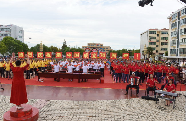 熱烈慶祝中華人民共和國成立70周年和江蘇省淮海農場有限公司第十三屆廣場文化節活動的成功舉辦,掀起了農場職工同唱愛國歌的熱潮,也讓廣大職工居民在視聽中,享受著淮海高質量發展帶來的文化盛宴。圖為廣場文化節部分節目場景。