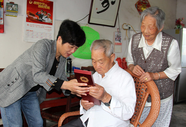 在慶祝中華人民共和國成立70周年之際,?港農(nóng)場14名中華人民共和國成立前參加革命工作的、健在的老戰(zhàn)士老同志榮獲了由中共中央、國務院、中共軍委聯(lián)合頒發(fā)的“慶祝中華人民共和國成立70周年”紀念章。近日,公司黨委書記王世伯、黨委工作部負責人及社區(qū)有關(guān)人員專程為老同志們送上紀念章。