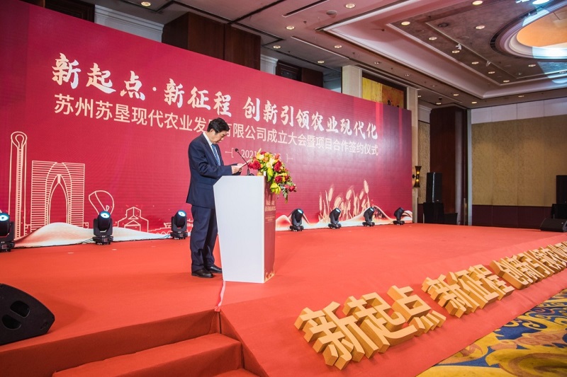 4月16日,蘇州蘇墾現代農業發展有限公司成立大會暨項目合作簽約儀式在蘇州舉行。蘇州市委副書記朱民,江蘇省農墾集團黨委書記、董事長魏紅軍出席并致辭,江蘇省農墾集團總經理、蘇墾農發董事長胡兆輝主持會議和簽約儀式,蘇州市副市長蔣來清等出席活動。