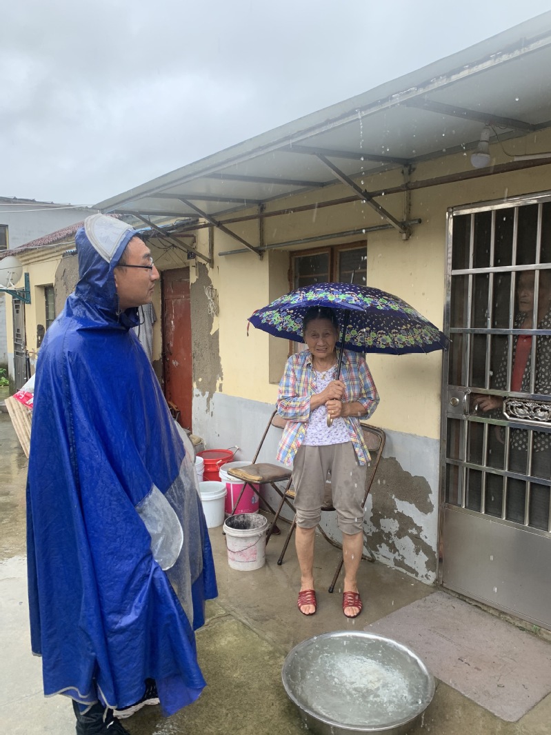 居家養老工作人員積極配合居委會,對轄區內多個易積淹水點進行排查。提醒居民惡劣天氣盡量不外出,對自家太陽能進行加固處理。