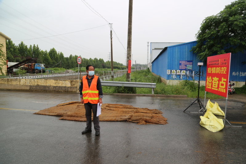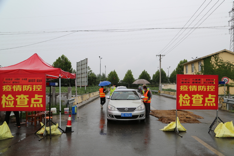 在騰飛南路卡口點(diǎn),排查人員正在對(duì)一輛外地車輛進(jìn)行排查,詳細(xì)了解其行程。該卡口是進(jìn)入鎮(zhèn)區(qū)的主要卡口,來往車輛最多,經(jīng)常會(huì)造成擁堵。但是執(zhí)勤人員并沒有因?yàn)橄掠旰蛽矶戮头潘膳挪榱Χ龋冀K在雨中耐心堅(jiān)守。