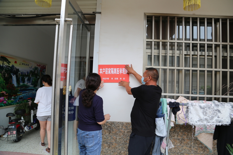 在鎮(zhèn)西居委會(huì)一處居民家門口,社區(qū)工作人員、醫(yī)護(hù)人員、警務(wù)人員正在對(duì)一戶外來人員進(jìn)行五包一隔離。工作人員貼起了隔離告示牌,詳細(xì)詢問了該居民從何地回來,有無高風(fēng)險(xiǎn)地區(qū)滯留史,同時(shí)告知他們有任何需求可以聯(lián)系居委會(huì),一定會(huì)幫助他們解決生活問題。醫(yī)護(hù)人員對(duì)其高知核酸檢測(cè)注意事項(xiàng),如何居家防護(hù)消毒等。據(jù)了解,社區(qū)工作人員今天冒雨已經(jīng)走訪了全場(chǎng)21家解除居家隔離或者采取五包一人員家庭。