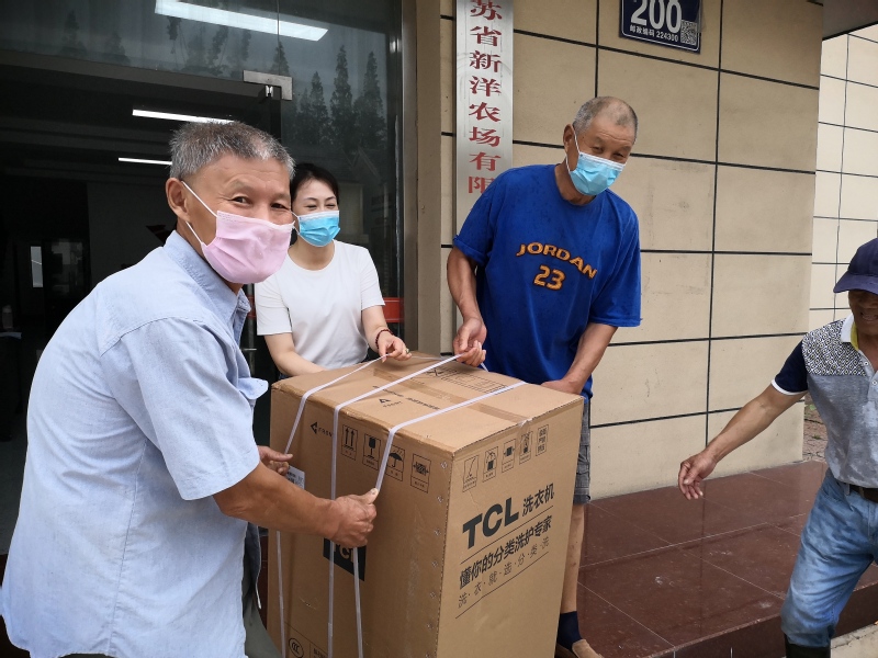 一家家、一戶戶陸續來到社區簽字領取家電。殘疾人陳雪芬父親接過微波爐、電飯煲感動地說:“感謝農場、感謝社區幫我們爭取的免費家電。”陳自力從小智力重殘,母親雙腿行動不便,家庭困難,陳自力的爺爺雙手扶著洗衣機感動地說:“現在黨的政策好,農場領導也好,我們全家感謝社區、感謝你們”。