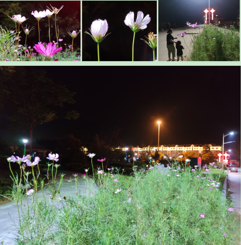 在淮海農(nóng)場醫(yī)院門前的健康路上,生長著約幾十米長的秋英花,白天盡顯嫵媚,成為健康路途中的一道別樣風(fēng)景,而到了夜晚在燈光的映襯下,秋英也就更具特色,像是一朵朵唯美的風(fēng)景,讓人流連中又不忍去碰它,生怕觸動(dòng)它那嬌嫩的肌膚。這些花朵與農(nóng)場大面積栽種的綠植不同,因?yàn)樗遣荼局参铮簿统蔀榱宿r(nóng)場綠化家族中的新一景,吸引著人們駐足觀看,也讓美麗淮海增添了一處新的觀光地帶。