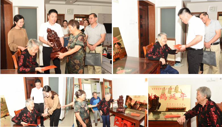 9月10日上午,淮海農(nóng)場有限公司副總經(jīng)理、工會主席戴學(xué)林和部門相關(guān)人員及社區(qū)民政部門人員一起,來到位于五岸新村的邱鳳英的家中,帶著慰問品和慰問金,并代表農(nóng)場公司黨委,向剛剛達(dá)到百歲的邱鳳英老人祝賀百歲生日,并向老人表示衷心的祝福和美好的祝愿。