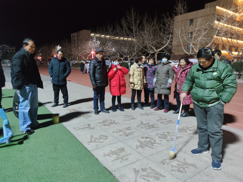 說(shuō)起寫(xiě)“地書(shū)”的好處,田海燕說(shuō),他每天晚上都要在廣場(chǎng)上、公園里或是路道邊練習(xí)一個(gè)多小時(shí),這樣既有利于保健養(yǎng)生,也有利于益智養(yǎng)性,在回憶名人詩(shī)詞和偉人風(fēng)采中,展現(xiàn)博大精深的中華文化,也得到了眾多觀看者的稱(chēng)頌,這可謂是一舉多得。