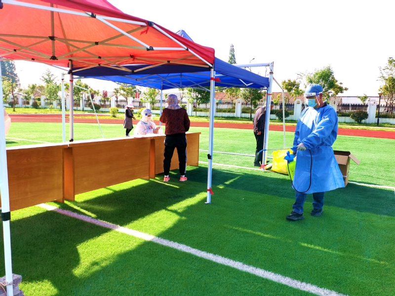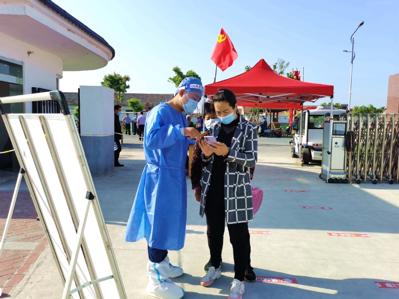 我在崗,您省心。“能做一點是一點,疫情防控是我們大家共同的事。”姜明亮是社區機關黨支部一名預備黨員,當他得知5月3日夜班值班人員臨時有事便主動請纓,從晚上八點到次日早晨八點,他把承諾當做責任來踐行。5月4日農場組織全員核酸檢測,他一掃夜班值守的疲憊,直奔迎湖健身廣場核酸采樣點,背上消毒機進行現場環境消殺。劉圩小學采樣點,只見一位“小藍”手拿擴音喇叭對著居民喊話:“病毒無情人有情,健康連著你我他,請大家保持一米線?!苯涍^仔細辨認大家才認出她是社區財務劉玉。“平時聲音不大,維持秩序時聲音倒不小?!贝蠹壹娂姙樗c贊?!澳?,請出示身份信息?!比謭龉ぷ魅藛T劉昕身穿白色防護服,正忙著采集身份信息。朝陽下,汗水浸透了衣衫、曬紅了臉頰,他卻沒有一聲抱怨。當天他共采集490個信息,這也是他連續五次完成三分場采集點數據采集任務。