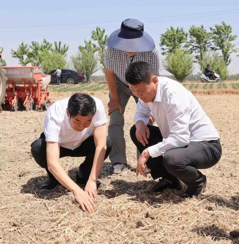 胡兆輝先后考察了蘇墾農發股份公司崗埠分公司王溝生產區玉米大豆帶狀復合種植播種現場、耕地現場和崗埠生產區曬場糧食安全情況,并與檢查玉米大豆帶狀復合種植質量的田間工作人員親切交談,對崗埠全場“一盤棋”、全力戰“三夏”給予充分肯定。胡兆輝指出,要提高政治站位,堅決服從國家戰略需要,高質量完成省委省政府交予的重要任務。要增強全局意識,堅定信心,服從指揮,把思想認識行動統一到集團公司決策部署上來,以“國之大者”的胸懷壓實責任擔當。要堅定不移推進全面從嚴治黨,推動黨建工作與產業融合發展,以高質量黨建引領高質量發展。胡兆輝強調,要通過推進玉米大豆帶狀復合種植推動產業結構優化升級,及時調整產業結構和產品布局,加大機械投入,大力發展現代農業,力爭實現跨越式發展。要落實“藏糧于地、藏糧于技”以及藏糧于管戰略,嚴格執行技術規程和試驗示范工作方案,及時總結經驗,確保玉米大豆帶狀復合種植任務按時完成,堅決打贏玉米大豆帶狀復合種植播種這場硬仗。胡兆輝要求,要深刻理解做好“三夏”工作的重大意義,充分認清“三夏”工作的復雜性、艱巨性、特殊性,攻堅克難,主動擔當作為,全面抓好信訪穩定、疫情防控、安全生產等工作,圍繞“五保一控”目標,誓奪“三夏”工作全面勝利,為江蘇農墾高質量完成10萬畝玉米大豆帶狀復合種植貢獻崗埠力量。