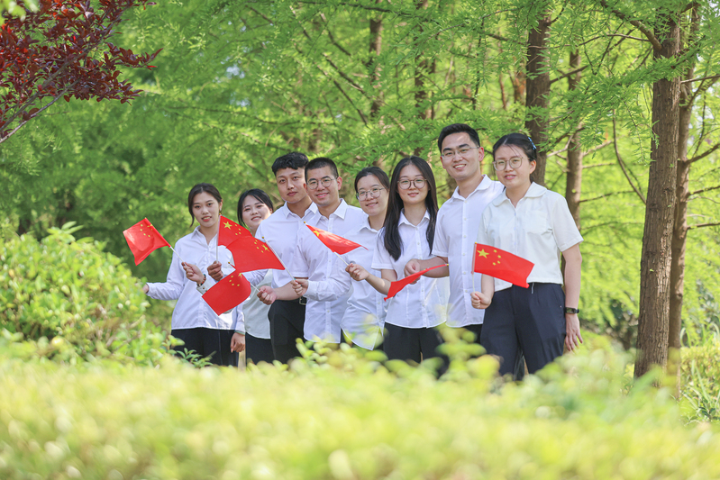 9月27日,在江蘇省鹽城市射陽縣,江蘇農墾新洋農場組織青年員工開展“我與國旗合影”活動。張偉生 攝