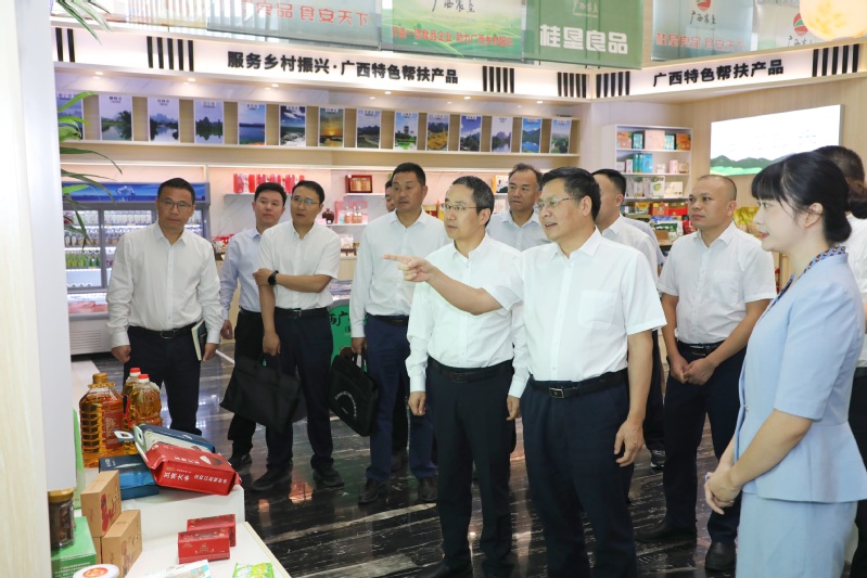 調(diào)研期間,吳本輝一行先后到廣西農(nóng)墾旗下邕之泰公司、永新畜牧集團(tuán)良圻獸醫(yī)技術(shù)中心、明陽農(nóng)場公司現(xiàn)代農(nóng)業(yè)基地、非糧生物質(zhì)能技術(shù)全國重點(diǎn)實(shí)驗(yàn)室、金光農(nóng)場公司現(xiàn)代農(nóng)業(yè)基地、桂墾良品展示展銷中心、廣西農(nóng)墾展示館等地考察學(xué)習(xí)。在邕之泰公司,吳本輝對廣西農(nóng)墾集團(tuán)通過混改并購延伸生豬產(chǎn)業(yè)鏈,從無到有、從有到強(qiáng)的發(fā)展模式給予高度評價;在永新畜牧集團(tuán),雙方就生豬養(yǎng)殖模式、科技研發(fā)、成本壓降、環(huán)保治理等方面進(jìn)行了深入交流;在廣西農(nóng)墾明陽片區(qū)、金光片區(qū)現(xiàn)代農(nóng)業(yè)基地,吳本輝一行考察調(diào)研了特色現(xiàn)代農(nóng)業(yè)和設(shè)施農(nóng)業(yè)發(fā)展情況,詳細(xì)聽取了廣西農(nóng)墾特色農(nóng)業(yè)發(fā)展、農(nóng)產(chǎn)品和食品加工、市場營銷等方面的經(jīng)驗(yàn)做法;在非糧生物質(zhì)能技術(shù)全國重點(diǎn)實(shí)驗(yàn)室和廣西化工院,吳本輝對廣西農(nóng)墾堅持科技創(chuàng)新賦能、深化科技人才隊伍建設(shè)、加速科技成果研發(fā)轉(zhuǎn)化等方面取得的成效給予了高度評價。