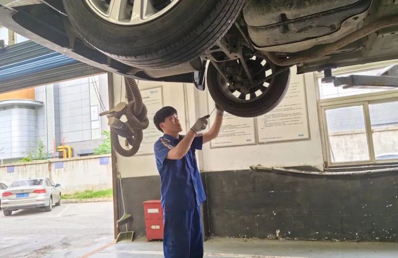 蘇舜汽車公司(上汽大眾4S店)機電技師周亞威正在為保養車進行全車檢查,他認真清理著輪胎上的石子,為客戶消除車輛行駛中打滑、漏氣、爆胎等隱患,保障車輛行駛安全。