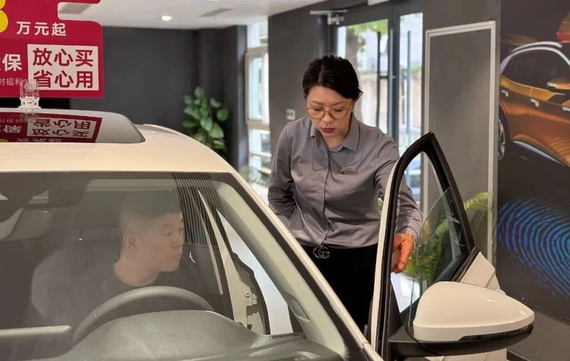 蘇舜安吉公司(上汽大眾4S店)銷售顧問張艷,正在認真地給客戶講解新車功能配置,過程中她憑借自己的專業能力逐一解答了客戶關心的問題,成功簽單。