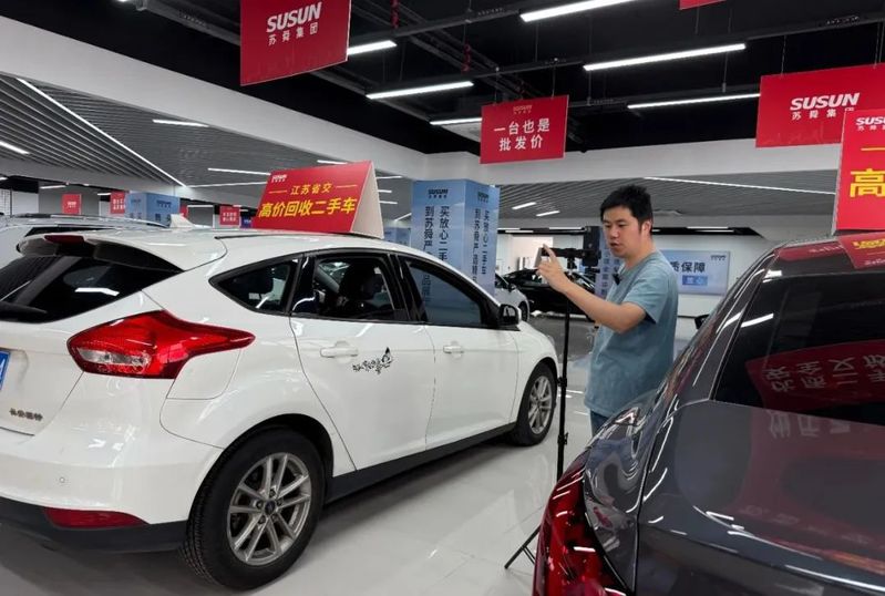 蘇舜省交公司(高端二手車銷售)主播解躍文正在通過鏡頭向客戶全方位展示各款車型,詳細介紹車輛的外觀、內飾、參數、配置等信息,讓客戶切實感受到“云”購車的貼心、誠心和安心。