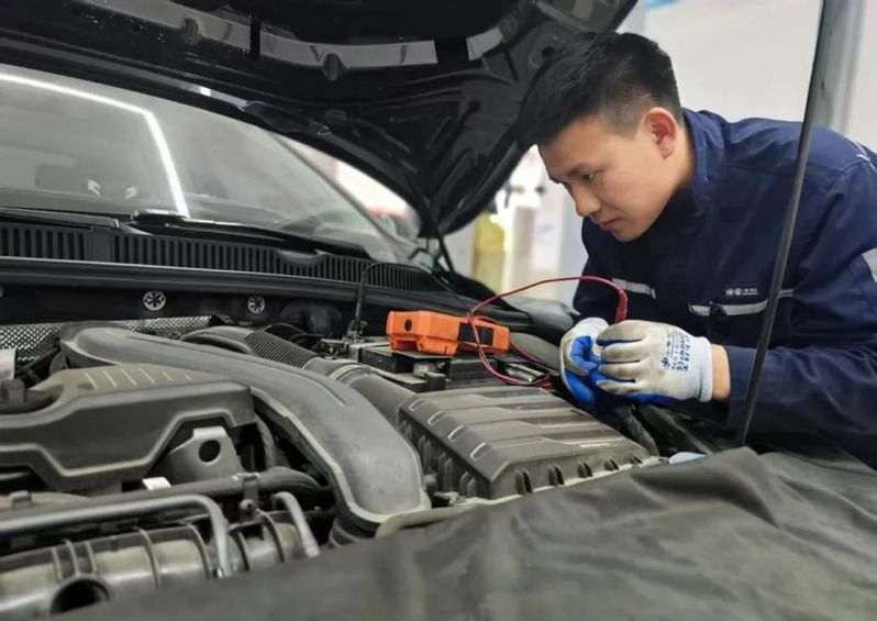 蘇舜恒通公司(一汽大眾4S店)機電技師張凱正在排查一輛邁騰車的發動機故障。他說:“今天修好了一輛故障復雜的車,感覺自己的耐心和技術都得到了鍛煉和提升?!?/p>