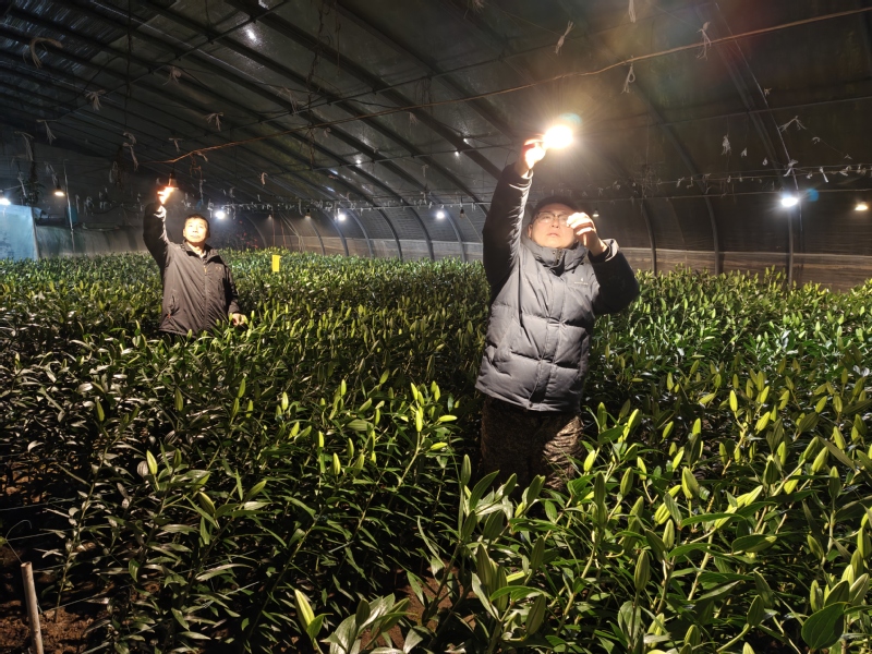 崗埠農(nóng)場則聚焦高效農(nóng)業(yè)示范園作物分類管護(hù),組織人員對所有大棚骨架、保溫棉被進(jìn)行全面檢修加固,為1.5萬株百合花苗噴施抗逆性葉面肥,對西紅柿苗開展精準(zhǔn)打杈、澆水管理,提前準(zhǔn)備40余臺套熱風(fēng)機(jī)、水源熱泵等加溫設(shè)備,其中31號大棚通過水源熱泵將夜間溫度穩(wěn)定在16.5℃,有效保障作物生長關(guān)鍵期需求。