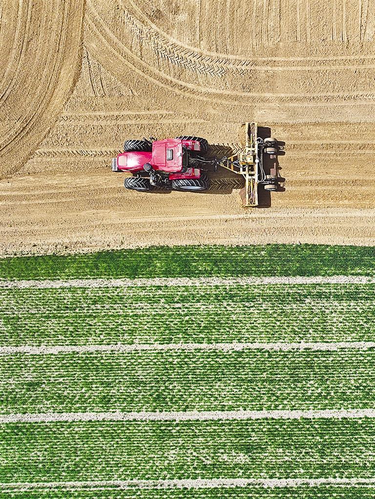 二月二十五日,江蘇省鹽城市射陽縣新洋農場的一處高標準農田里,搭載著北斗導航系統的激光平地機在進行春耕作業,為水稻育秧做好準備。