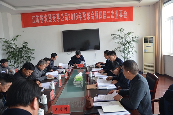 2月20日下午,蘇墾麥芽公司2019年股東會暨四屆二次董事會在公司會議室召開,集團公司副總經理姜建友出席會議,全體股東代表、董事參加了會議,公司監事及經營層成員列