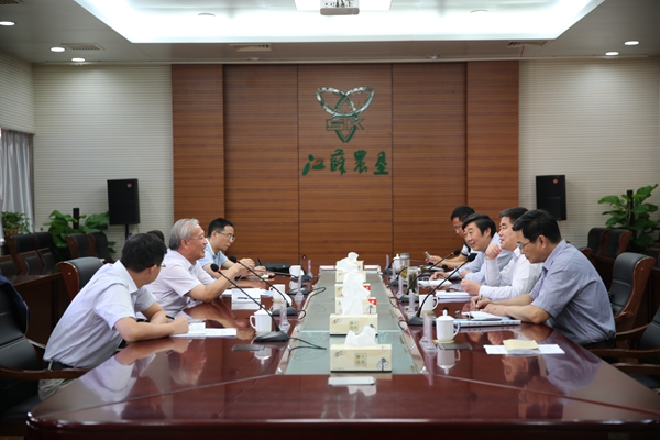 9月26日下午,集團公司黨委書記、董事長魏紅軍、總經理胡兆輝在機關十二樓會議室會見鎮江市委常委、常務副市長裔玉乾,鎮江經濟技術開發區管委會主任薛峰一行并座談。集團公司副總經理仲小兵、總經濟師劉剛,