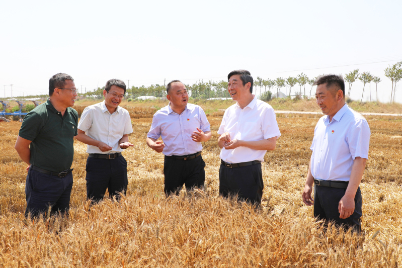 6月12日下午,集團公司黨委書記、董事長魏紅軍到東辛調(diào)研。他強調(diào),要深入扎實開展學(xué)習(xí)貫徹習(xí)近平新時代中國特色社會主義思想主題教育,把“學(xué)思想、強黨性、重實踐、建新功”總要求貫穿始終,堅持問題導(dǎo)向,深化調(diào)查研究,持續(xù)提高發(fā)現(xiàn)問題、研究問題、解決問題的能力,以實實在在的工作業(yè)績檢驗主題教育成果。魏紅軍針對東辛漁光互補項目前期規(guī)劃中可能存在的問題,前往灌云洋橋漁光一體光伏發(fā)電項目現(xiàn)場考察,詳細了解相關(guān)經(jīng)驗做法。隨后在東辛小麥制種大縣項目現(xiàn)場聽取“三夏”工作情況介紹,并對東辛“三夏”工作取得階段性勝利表示肯定。魏紅軍強調(diào),要堅決抓好糧食安全這件頭等大事,決不能有任何松勁歇腳的思想,牢牢把握主動權(quán),確保“三夏”取得全勝。要大力實施集團公司強核戰(zhàn)略和種業(yè)振興行動,將小麥制種大縣項目打造成東辛的一張名片。邁上新征程,東辛要聚焦影響高質(zhì)量發(fā)展突出問題,進一步樹立“謀大事、干大事、成大事”的鮮明導(dǎo)向,抓好產(chǎn)業(yè)發(fā)展,強化內(nèi)部管理,提升經(jīng)營效益,不斷增強核心競爭力,在事關(guān)全局、事關(guān)發(fā)展、事關(guān)長遠的研究謀劃、難題破解上取得新進展新成效,奮力在墾區(qū)高質(zhì)量發(fā)展和現(xiàn)代化建設(shè)中繼續(xù)當(dāng)好排頭兵,為打造現(xiàn)代農(nóng)業(yè)航母“江蘇