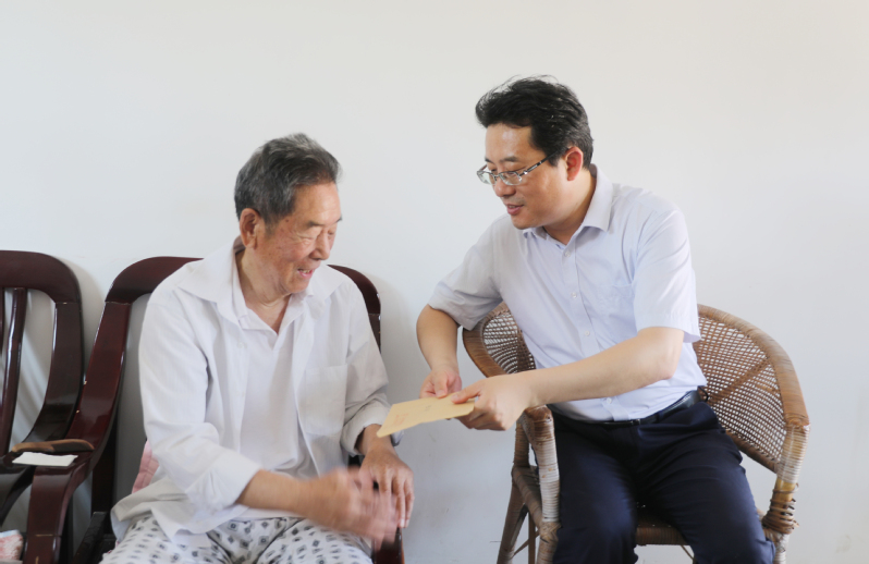 6月23日上午,集團公司黨委委員、副總經(jīng)理姜建友一行到崗埠走訪慰問部分困難黨員,為他們送去集團公司黨委的關懷和溫暖。農(nóng)場公司黨委主要領導陪同。姜建友一行先后來到老黨員包加能、許守喬、朱同寶的家中,他們都有50年以上的黨齡,每到一家都與大家親切交談,詳細詢問他們的健康狀況、日常生活等情況,并親手給他們戴上“光榮在黨50年”紀念章,送上慰問金和慰問品。當?shù)弥幽軈⒓舆^“抗美援朝”時,姜建友對老人表示崇高的敬意,他說:“老黨員是黨和國家的寶貴財富,在喜迎建黨百年的重要時刻,更要讓他們切實感受到黨組織的關懷和溫暖”。姜建友充分肯定農(nóng)場公司黨委開展“我為職工居民辦實事”實踐活動的成效,要求農(nóng)場公司黨委要解決焦點堵點難點問題,繼續(xù)推動黨史學習教育走深走實,引領職工群眾聽黨話、感黨恩、跟黨走,以實際行動奮進新時代、擔當新使命、展現(xiàn)新作為。