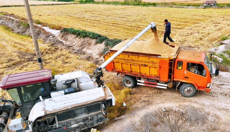 時(shí)下,正式秋收好時(shí)節(jié),在蘇墾農(nóng)發(fā)云臺(tái)分公司廣袤的田野上,豆莢搖曳如鈴,玉米金黃飽滿,伴隨著收割機(jī)的轟鳴聲,蘇墾農(nóng)發(fā)云臺(tái)分公司1.1萬畝玉米大豆復(fù)合種植“喜開鐮”,工作人員搶抓晴好天氣,及時(shí)收割、晾曬,開始了緊張而有序的收割工作。蘇墾農(nóng)發(fā)云臺(tái)分公司緊盯全年糧食生產(chǎn)目標(biāo)任務(wù),按照江蘇省農(nóng)墾集團(tuán)的“五統(tǒng)一”模式為標(biāo)準(zhǔn),通過“4+4”復(fù)合種植模式,充分發(fā)揮高位作物玉米的邊行優(yōu)勢,擴(kuò)大低位作物大豆受光空間,實(shí)現(xiàn)作物協(xié)同共生、一季雙收。為了抓好今年“三秋”工作,蘇墾農(nóng)發(fā)云臺(tái)分公司制定了各大隊(duì)組織分工、產(chǎn)量目標(biāo)、成本管控、生產(chǎn)進(jìn)度、作業(yè)質(zhì)量、田間苗情、病蟲草害控制、場頭管理與糧食入庫銷售、質(zhì)控平臺(tái)運(yùn)行、農(nóng)業(yè)面源污染治理、藥肥雙減增效、安全生產(chǎn)等12項(xiàng)“三秋”考核內(nèi)容,并多次開展技術(shù)培訓(xùn),為抓好“三秋”工作提供組織保證、考核目標(biāo)和技術(shù)標(biāo)準(zhǔn)。“看樣子,今年又是一個(gè)豐收年。”一大隊(duì)隊(duì)長王飛抓起一把玉米說。“開始作業(yè)前,我們對(duì)所有農(nóng)機(jī)具進(jìn)行了安全自查,確保收割機(jī)狀態(tài)良好,在玉米收割過程中我們嚴(yán)格按照玉米收獲作業(yè)質(zhì)量管理規(guī)程,真正實(shí)現(xiàn)玉米籽粒損失率要小于等于百分之二,籽粒破損率要小于等于百分之五的目標(biāo)任務(wù)。”