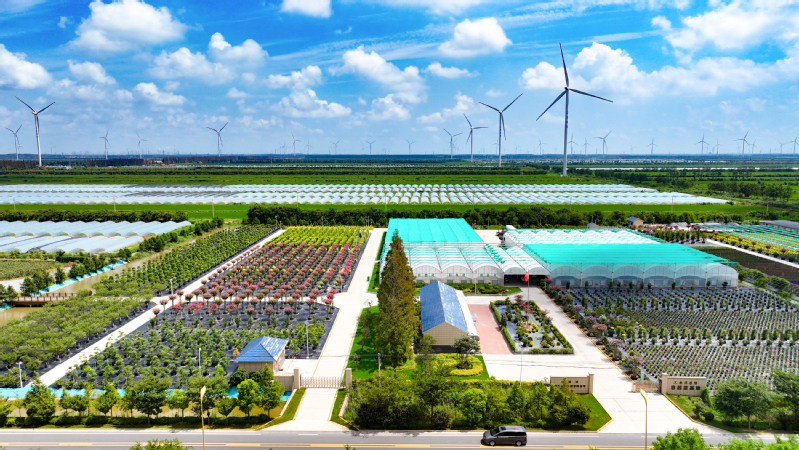初秋時節,走進新洋農場容器苗項目基地,素有“百日紅”之稱的紫薇花進入了盛花期?;毓芾砣藛T梁亞洲正在為紫薇花瓶噴施營養液,順手修剪掉雜枝,為紫薇健康生長提供保障。紫薇花期長,是觀花、觀干、觀根的盆景良材,一棵培育良好、株高2米的紫薇花瓶容器苗木市場價可達2000元以上,具有良好的經濟效益和景觀效果?!搬槍η锛咀限鄙L特點,我們還集中對紫薇進行了抹芽、修枝、除草,保證苗木生長良好、發育健壯、形狀優美?!绷簛喼拚f,紫薇是一種綠化點綴效果很好的觀賞苗木,尤其是夏秋季道路綠化開花小喬木不多,紫薇正好填補了這個季節的空白。2020年以來,新洋建成配有溫室大棚、水肥一體、智能控制、基質配方、節水灌溉等設備的容器苗圃200畝,主打球類、造型類、花喬類等綠化苗木產品近萬株。在栽培方式上,林業公司大膽嘗試,自行研發優化不同容器苗基質配比,開展扦插培育試驗,實現了自繁自育栽培技術的新突破?!斑@黑色薄膜包裹的是控根器,由于現在溫度較高,水分蒸發快,容器苗基質易缺水,要及時引水灌溉,濕透苗床,以保持土壤濕潤。”林業公司副總經理蔡仿介紹,針對當前溫度過高的情況,管理人員在后臺打開自動化噴淋設備,一體化水肥系統在