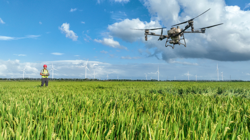9月22日,蘇墾農發新洋分公司組織搭載有北斗導航系統的植保無人機,對處于灌漿期的水稻進行秋季田管作業。