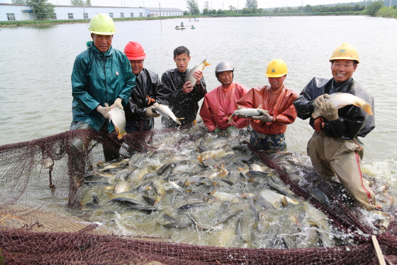 春放秋捕,共話豐收。走進(jìn)崗埠農(nóng)場(chǎng)公司南漁場(chǎng)的鯉魚養(yǎng)殖基地,一條條肥美的鯉魚不斷躍出水面,引起水花四濺。8月29日,崗埠農(nóng)場(chǎng)公司水產(chǎn)養(yǎng)殖中心迎來鯉魚“大豐收”,養(yǎng)殖基地內(nèi)熱鬧開捕秋天第一網(wǎng)鯉魚。初秋的早晨已然涼意十足,早上不到6點(diǎn),天剛蒙蒙亮,捕撈人員就來到魚塘開網(wǎng)起魚。在水產(chǎn)公司工作人員的指揮下,一張巨大的漁網(wǎng)隨著捕魚工人的移動(dòng)緩緩張開,大家不顧冰冷的水下溫度,緊張忙碌了起來。經(jīng)過鋪底、收網(wǎng)、聚攏等環(huán)節(jié)的共同協(xié)作,漁網(wǎng)被慢慢升起……整個(gè)現(xiàn)場(chǎng)一片繁忙熱鬧景象。經(jīng)過近三個(gè)小時(shí)的忙碌,在大家的精心分揀下,裝滿魚的筐子被吊車有序吊起,稱重、記錄、放魚一氣呵成。“這個(gè)吊車頂部的黃色圓塊就是電子秤,吊起魚的同時(shí),秤上的信號(hào)就發(fā)到這個(gè)無線接收裝置上來,秤重既方便又精準(zhǔn)。”現(xiàn)場(chǎng)記賬的方正解釋說。“看這些魚,品相好、質(zhì)量高,抓都抓不住,活蹦亂跳的,真是大豐收啊!”起魚的工人們雖然全身都已濕透,但是看著手里的大魚,臉上洋溢著收獲的笑容。據(jù)悉,本次捕撈的鯉魚名叫“福安鯉”,在春季投放,采取訂單式捕撈銷售。當(dāng)天,2.2萬斤“淮河牌”福安鯉被送上等候已久的運(yùn)輸車,銷往本省徐州市及河南省等地。“養(yǎng)殖中心依托豐富水